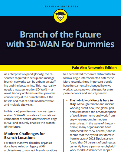 Check out the e-book, Branch of the Future with SD-WAN For Dummies®. You’ll discover modern challenges for branches, including: