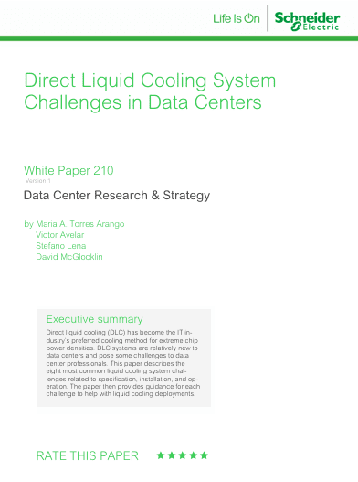 Direct liquid cooling (DLC) has become the IT industry’s preferred cooling method for extreme chip power densities. DLC systems are relatively new to data centers and pose some challenges to data center professionals. This paper describes the eight most common liquid cooling system challenges related to specification, installation, and operation. The paper then provides guidance for each challenge to help with liquid cooling deployments.