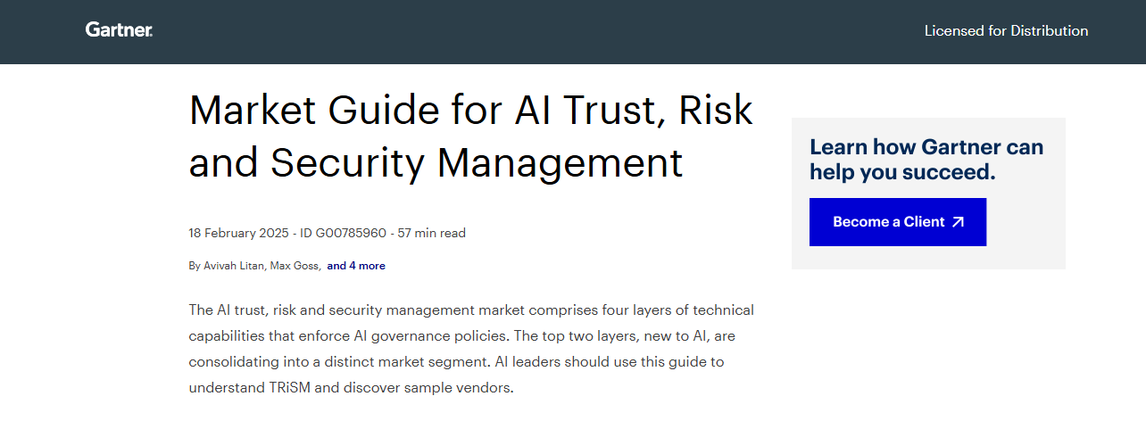 AI brings new trust, risk and security management challenges that conventional controls do not address. Data and analytics leaders must use the capabilities described in this guide to improve model reliability, trustworthiness, fairness, privacy and security. Sample vendors are provided.